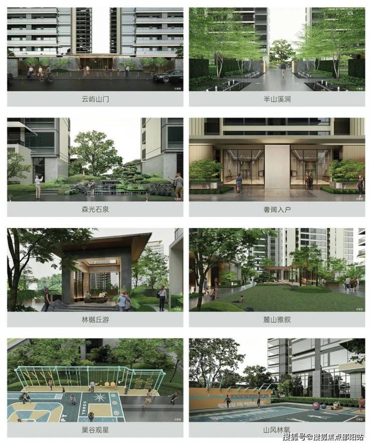 项目园林以“一轴八苑”的布局打造,人行主入口两侧为礼仪中轴和艺术水景,与云山互为呼应。