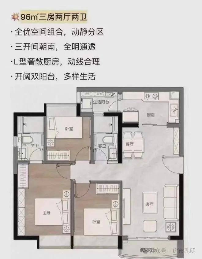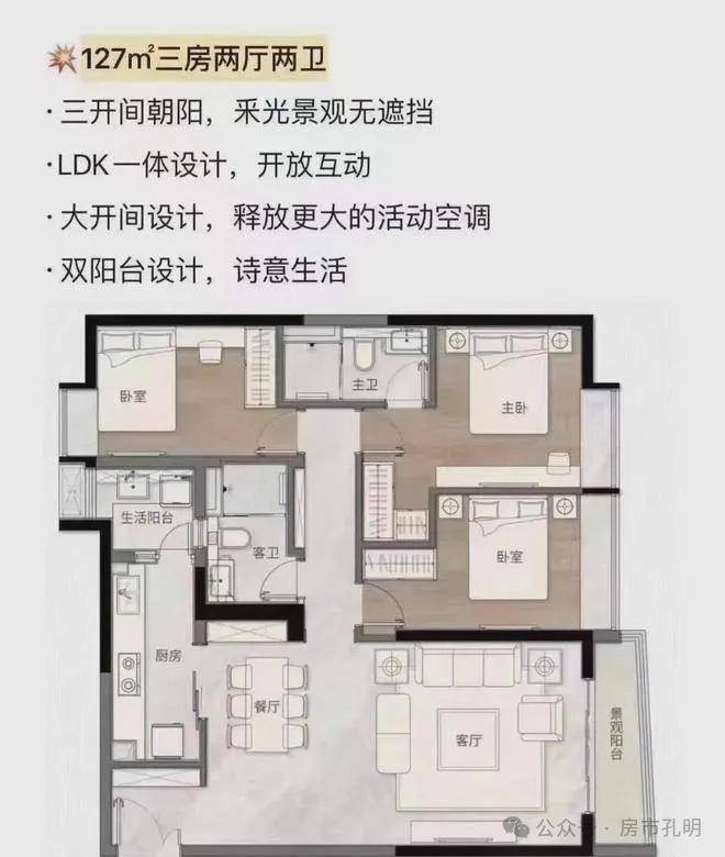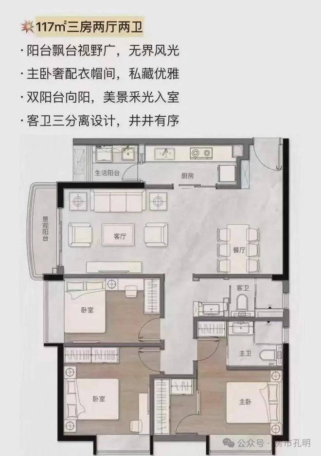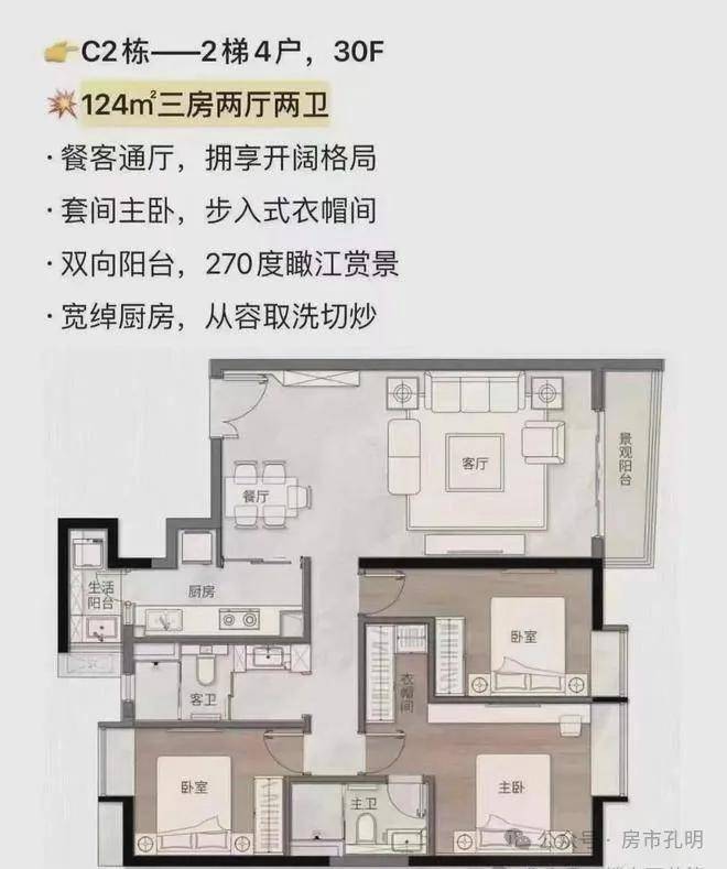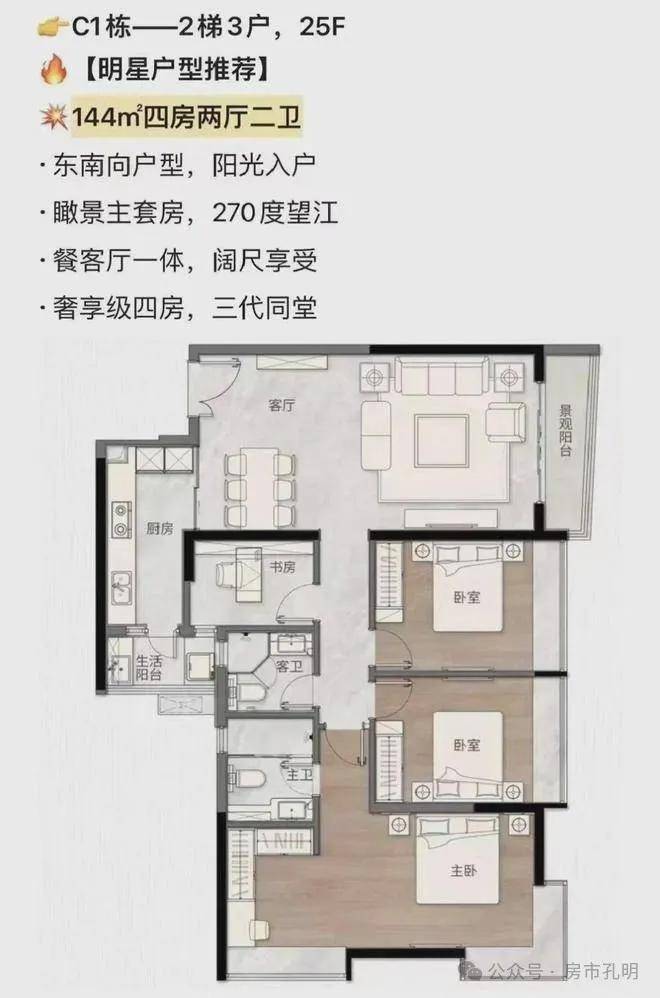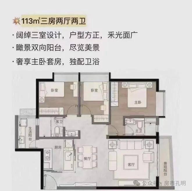 户型设计方正,采光面广,部分户型配备双阳台,视野开阔,可尽享珠江美景。
