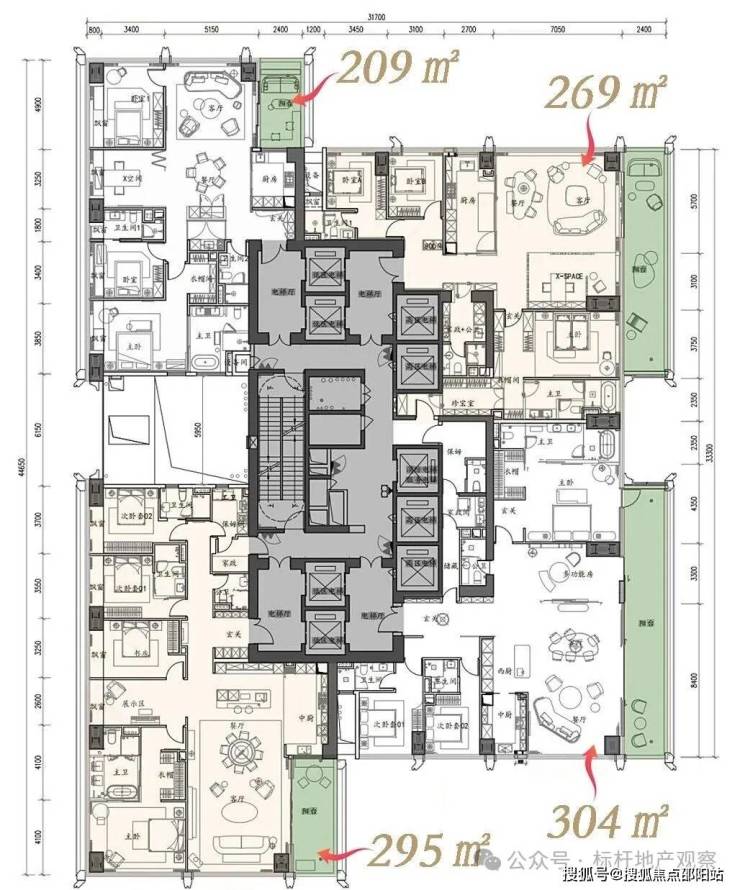 🌟住宅面积约209-269-294-304平,高区约370-375-403平,超高区约500平-700平-1050平