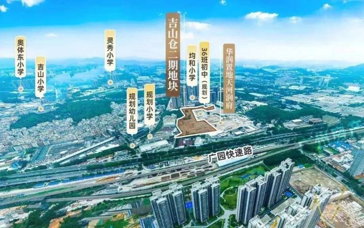 华润置地天河润府位于天河东吉山仓,牛奶厂板块,虽说是天河,但是已经是边缘地段,紧挨着黄埔,这里跟珠金琶形象完全不同,城市界面比较一般,路上都是一些工厂和汽修店,而且还不近地铁,好在是项目公区做到还不错,品质方面也还行,一路之隔就是体育东教育集团的均和小学,自身还配建了一所品牌初中,据说会引入执信,现在价格相比早期也是降了不少,90平三400万起,115平四房560万起,130平四房650万起也能买到,目前主要在售一期的1号楼,都是准现房华润置地天河润府区位图
