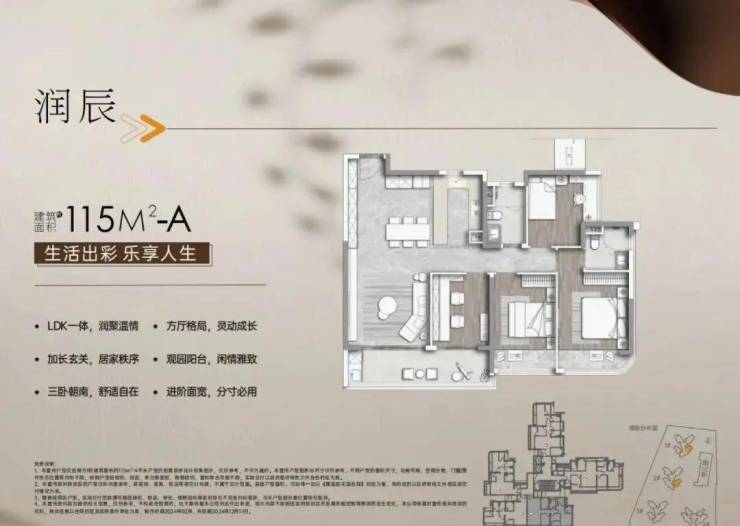 建面115平四房两卫,这个户型从玄关、客餐厅、主卧都做到了南北对流,另外还算五开间朝南,无论客厅还算主次卧,光线都非常好