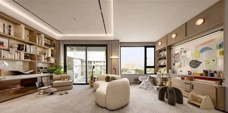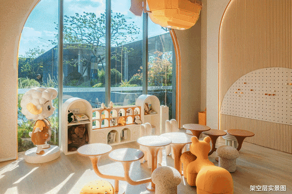 R-Dream梦想聚场架空层泛会所,涵盖会客厅、童趣梦岛主题乐园、知行书社、24小时便民自助区、自然课堂、棋牌室等配套,部分也已提前呈现。