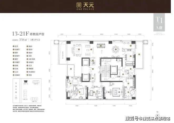 T1栋则是更加奢华的3梯1户(一层只有一户),533-540㎡