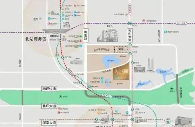小区周边已有交通网络四通八达,梅坂大道、梅龙路、福龙路、新区大道、民治大道、梅观高速及南坪快速等主干道临近项目周边,从小区出行至福田区、南山区、龙华、布吉等区域十分便利。