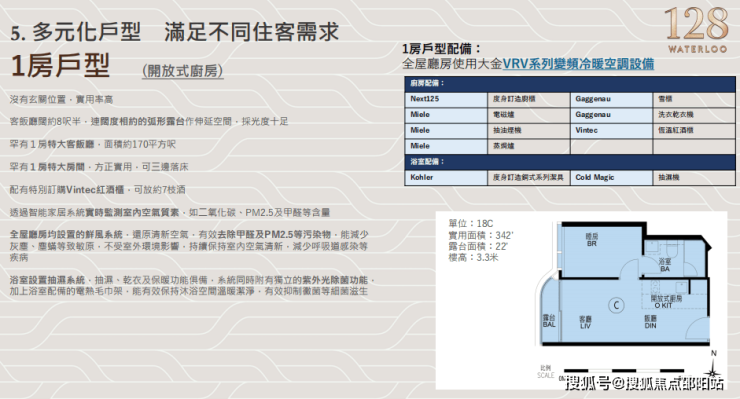 品质高端:全屋智能家居、德国 Miele 厨电等欧美品牌装修,户型多样(331-1258 平方呎),部分设地暖、加厚楼板。