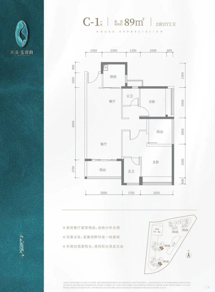 :竖厅设计,主卧及客厅朝南,L型厨房,总价275万起;