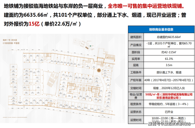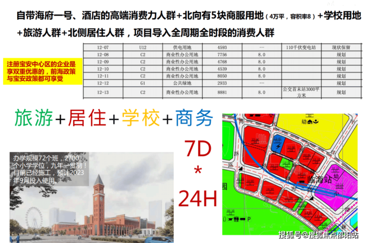 最旺客流:宝安中心区300万优质商务客群,前海片区80万就业人口,腾讯科技岛10万员工等,自带欢乐港湾+万豪酒店高端消费力人群+北向27万平规划办公+72班海天学校+北侧海量熙龙湾等高端住区人流,全周期+全时段;