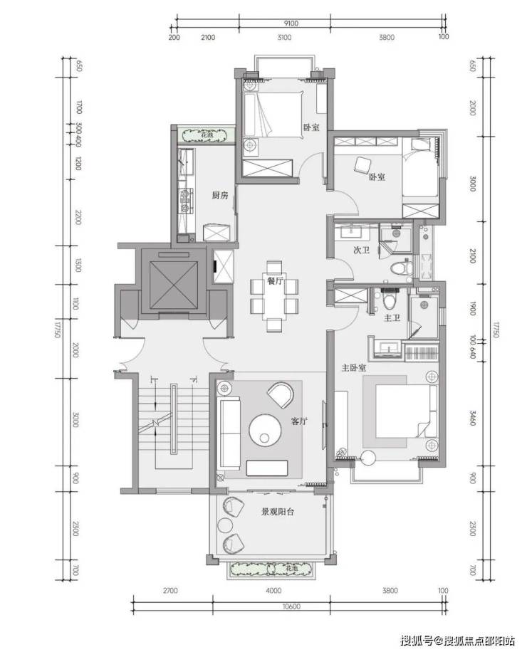 1、A户型:建筑面积约110平方米三房两厅两卫