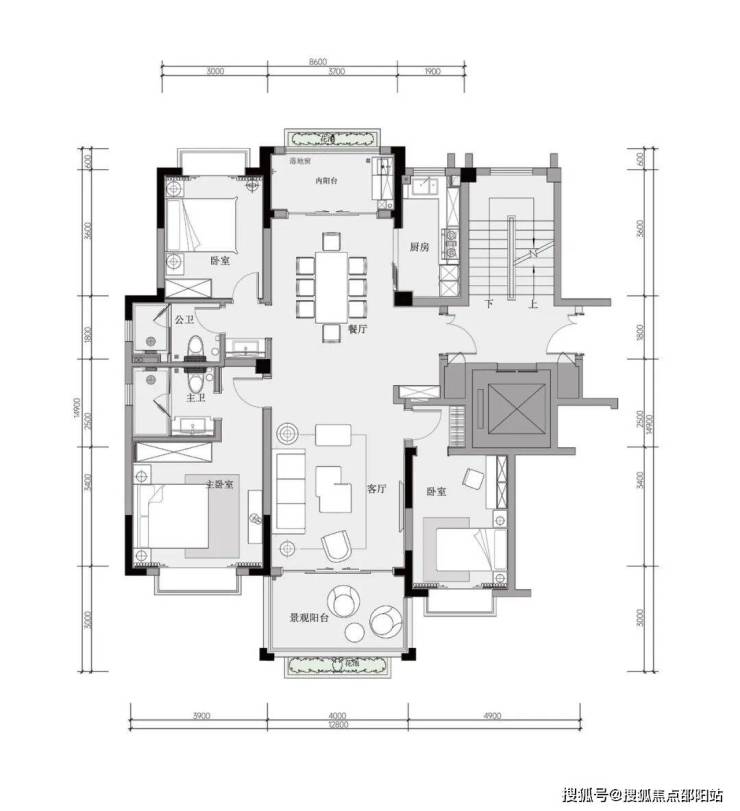 2、B户型:建筑面积约120平方米三房两厅两卫