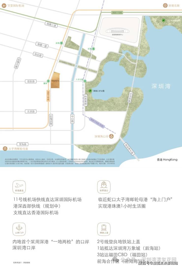 一席藏尽海/湖/园/城,四重盛景,踞守深圳湾畔约270°环瞰海景壮阔、湖境悠然、园景森氧、城脉璀璨的封面地脉。近享深圳人才公园,占地77万平方米,内湖面积约32万平方米,"公园生活圈"步行可达。(信息来源:深圳人才公园公众号)