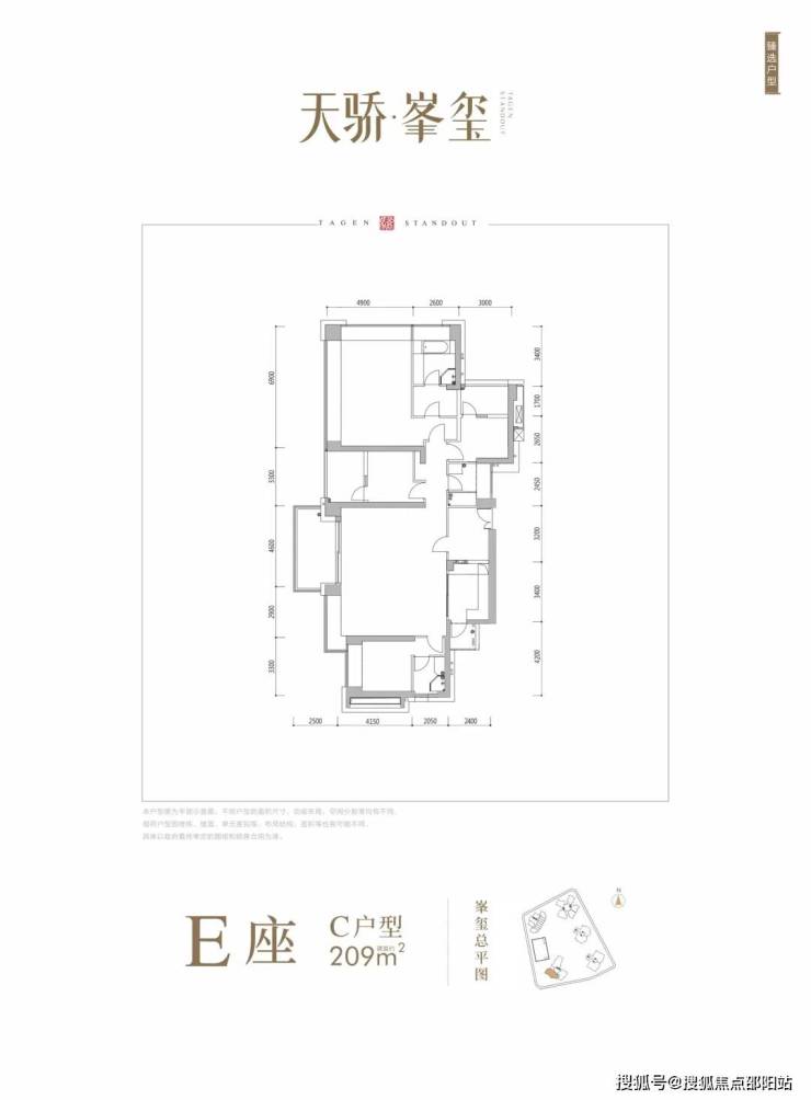 E座:约209-211㎡4房3卫 南北通