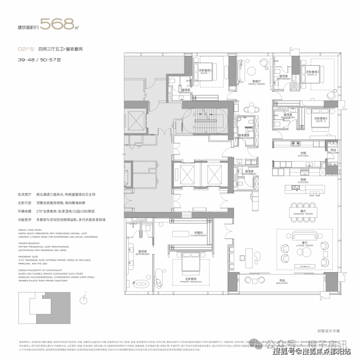 奢侈层高:层高达到3.6-4.5米,远超普通住宅。