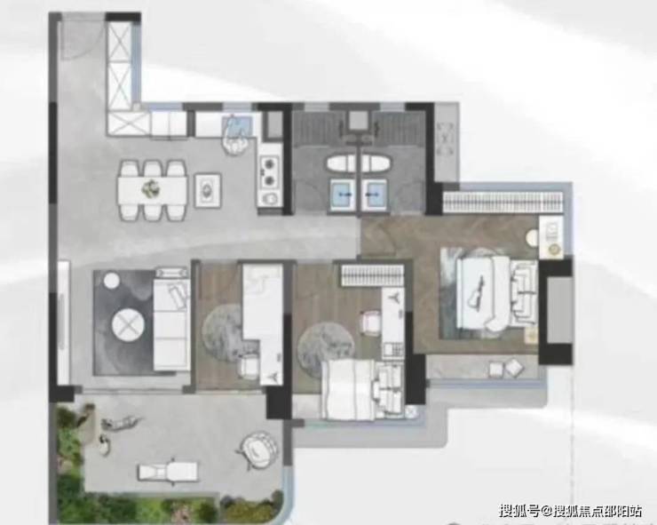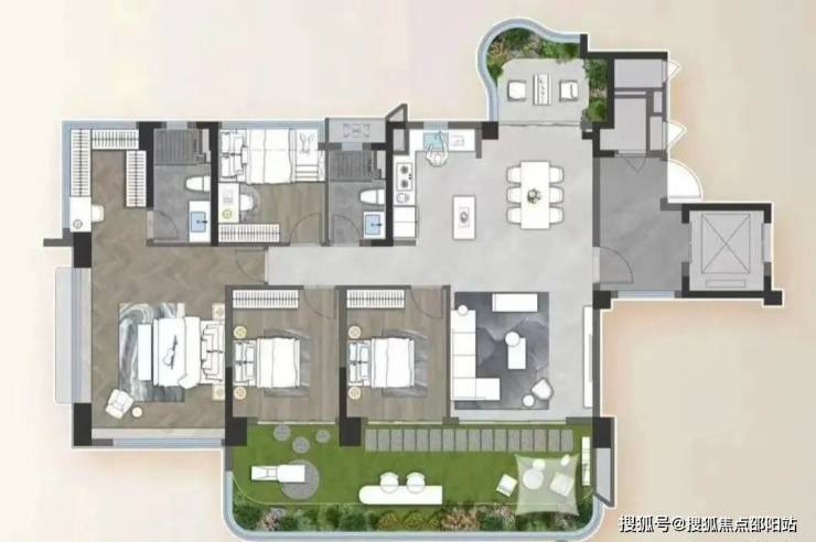 比如 110㎡的四房户型,实际使用面积可达 153㎡,实用率高达 139%。项目还运用了错层阳台设计,每个户型都有独特的空中花园,这样不仅增加了空间层次感,还提升了居住的舒适度和私密性,让高层洋房也有了别墅 “前庭后院” 的生活场景,住户可以在这里养花、种菜,甚至种树,尽情享受亲近自然的惬意生活。