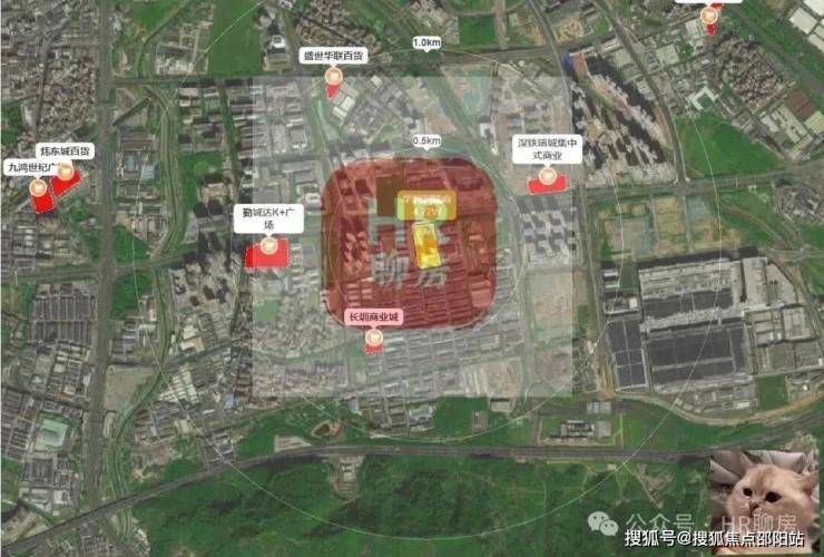 1公里范围内分布有传统的盛世华贸百货、长圳商业城和勤诚达K+广场集中式商业,