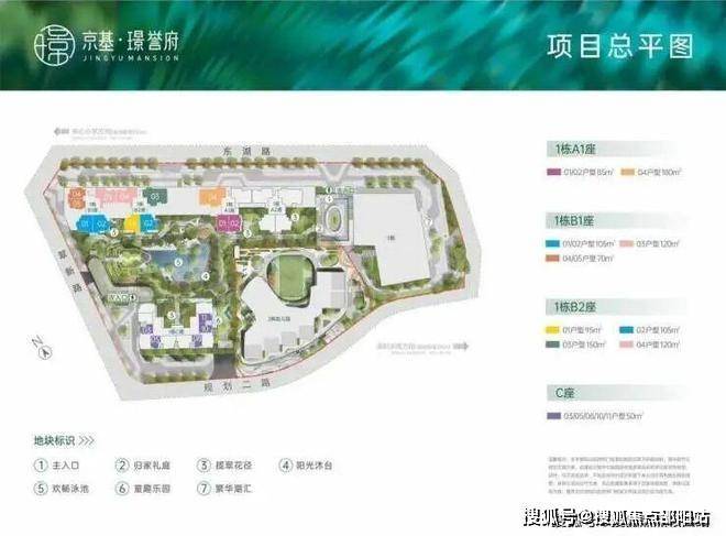 面积段:50㎡的1房1厅,70-85㎡的2房1厅,95-105㎡的3房2卫,120-150-180㎡的4房2卫户型