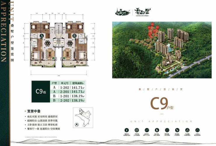 大城云山墅,依山而建,充分利用坡地优势,规划建筑,形成依林环山绝佳形态,恰巧是森林坡地叠墅的完美体现。