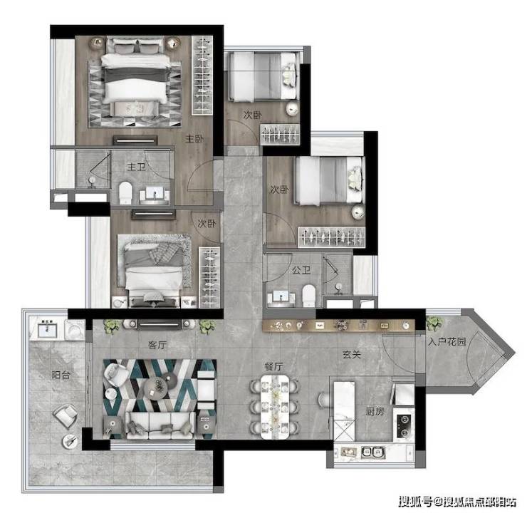 ⑥LDKG厅厨阳台一体化,公共空间扩大。