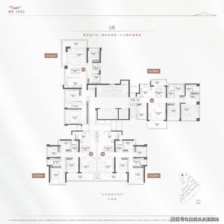 ③楼栋单梯腿,南向多面宽,采光通风最大化。