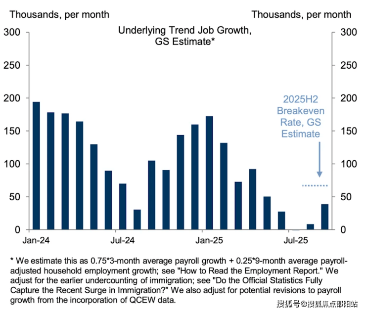 高盛估计,当前美国就业岗位新增数量已低于维持就业市场平衡所需的 “盈亏平衡” 水平。