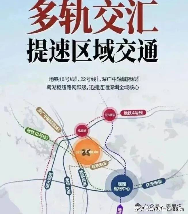 :作为 4 号线观澜站地铁上盖项目,步行仅 300-500 米即可进站,10 站直达深圳北站(换乘枢纽),16 站通达福田 CBD,满足核心城区通勤需求;在建地铁 22 号线鹭湖北站距项目约 800 米,2028 年通车后将新增跨区通勤通道,进一步提升交通能级。