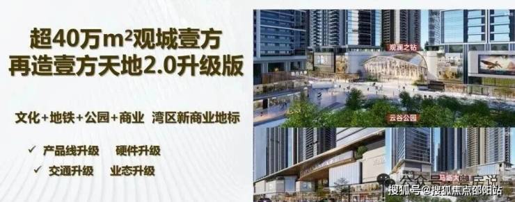 荣源观城作为观澜CBD综合体大盘,从建设初期就一直广受关注,迭代升级的壹方天地2.0版本,集超40万㎡一站式观城壹方商业、3所全龄段公立学校、5大生态公园、三甲医院及甲级写字楼集群于一体,以全维配套矩阵重塑区域价值,打造深圳西部醇熟生活新范本!
