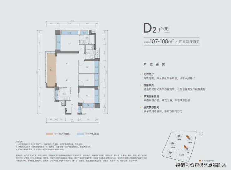 D-2户型 | 建面约107-108㎡四室两厅两卫