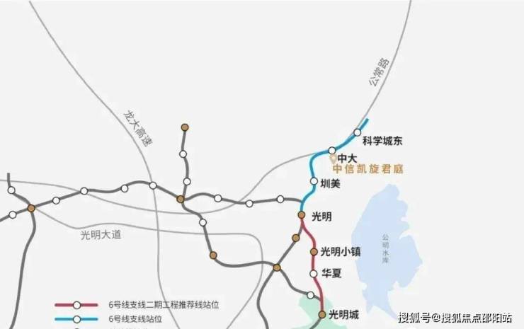 6号线支线起自6号线光明站,止于深莞边界,线路全长6.13公里共设3站4区间,该线路途径光明中心区、凤凰城片区,终至光明城站,建成后将与13号线、18号线,莞深城际、广深港高铁、赣深高铁换乘,届时,将能畅达南山、西丽科教城、会展新城等经济极核,通达大湾区多城。