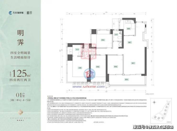 项目清晰地将产品重心聚焦于满足城市中坚力量家庭升级需求的改善型四房,为期望通过一次置业完成家庭生活全面升级的购房者而言,提供了一个理想的置业选择。同时,包含了少量珍贵的“上车”三房,为渴望入主海岸大城的精英家庭,提供了难得的入市机遇。