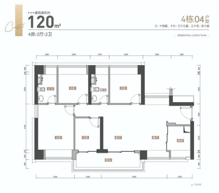 3栋:4梯6户,层高3.1米,01-04户型100平3房2卫,05-06户型120平4房2卫
