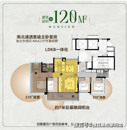 约5.2米开间客厅,LDKB一体化布局,使用功能更灵活,X空间随心而享