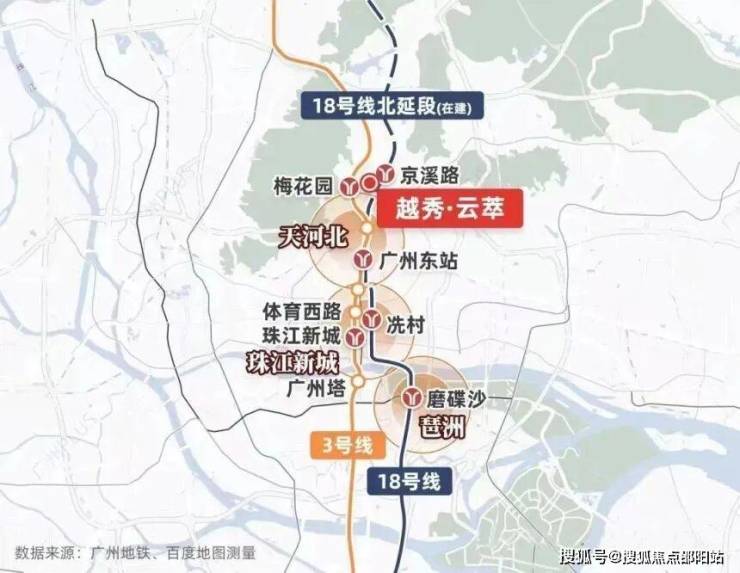 搭乘 3 号线 4 站能到珠江新城,早高峰通勤时间基本可控制在 40 分钟内。