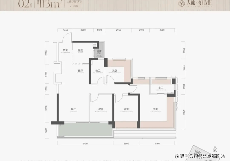 户型产品为113㎡ 4房和139㎡ 5房 约290套,2栋100米内31层住宅,2梯4户,其中主力为113㎡ 4房,具体户新图暂未公布。