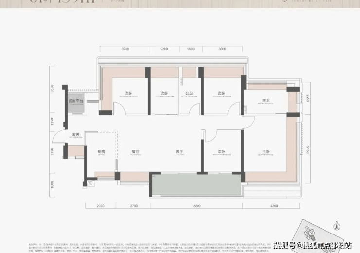 对比之前的113平户型,生生多了个房间,而且主卧尺度很大,开间和进深都超过了4米,双面采光,主卧进门独立衣帽间,具备一个次卧打通做大客厅的能力,新规户型优势很明显!