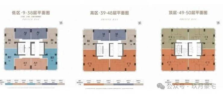 •主力产品:88-226㎡1-4房,部分户型可打通为620㎡复式;顶层415㎡起大平层,1270㎡户型可做6-8房,总价跨度1593万-5000万。