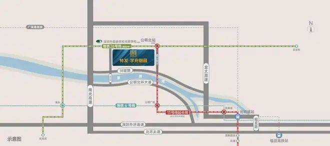 交通配套:项目距13号线二期(北延)公明北站直线距离约200米,4站达公明广场,可换乘6号线通达宝安/光明/龙华/罗湖/福田