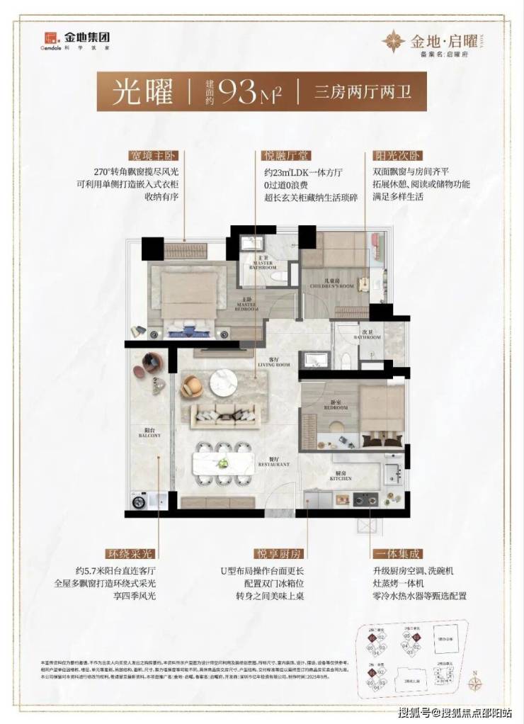 龙华金地启曜计划2025年12月入市,604套房源。户型包括93㎡的3房2厅2卫和103-130㎡的4房2厅2卫,全南向,3梯5户。参考幸福城臻园均价4.76万/平,精装交付,预计起价380万。
