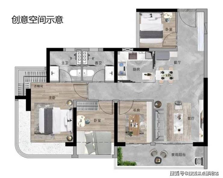 南向大面宽采光,主卧270°弧形飘窗瞰山景,打造自然宜居新场景