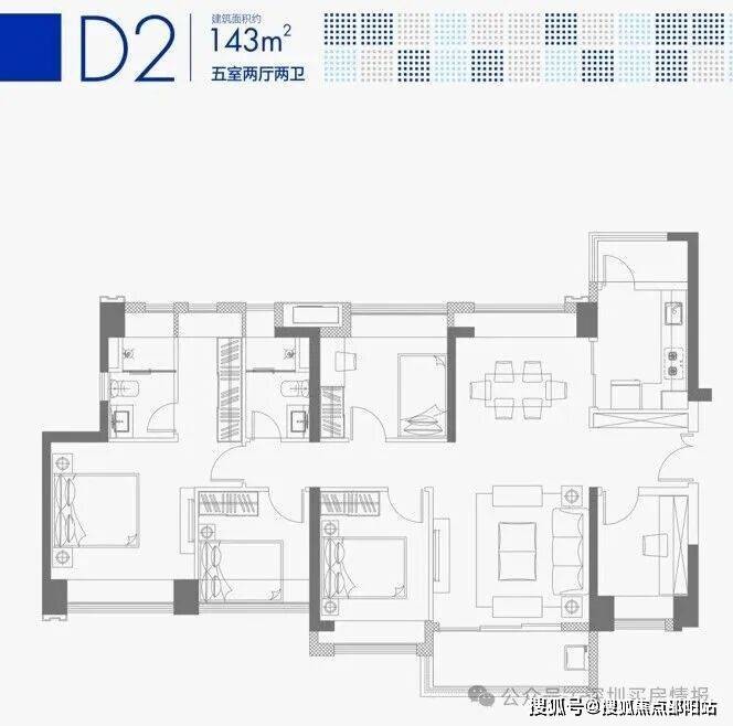 合正方洲瀚府共由6栋总高46-53层的住宅组成,其中1栋1单元/2栋1/2单元住宅47F,1栋2单元住宅46F,3栋1单元住宅53F,3栋2单元住宅52F,5栋是1所18班制幼儿园,园区内规划有多个儿童游戏场地,羽毛球场,足球场,总规划1508户,全部都是商品房,其中1栋2单元3梯5户,其它栋数都是3梯6户设计。