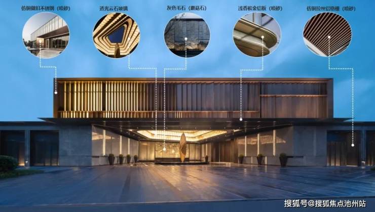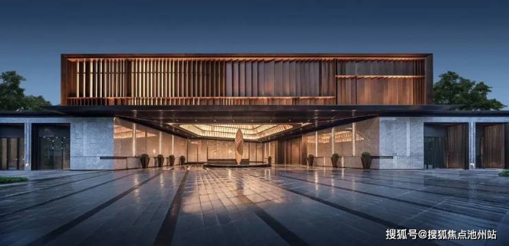 外立面采用更通透、明亮的浅灰色玻璃和香槟色木纹铝板,通过细节让建筑在色泽上更温暖近人;屋面以 L 型折角 “飞檐” 封顶,中段以舒朗的水平向线条为主,裙房用海蓝宝石材的重量感加以 “稳定” 基座。🏗️🏗️