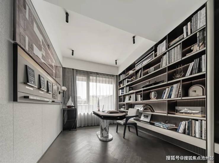 书房一隅作为办公空间,色调内敛沉稳,诸多造型取用 “船” 的元素。为时代掌舵者献礼……🚢💼