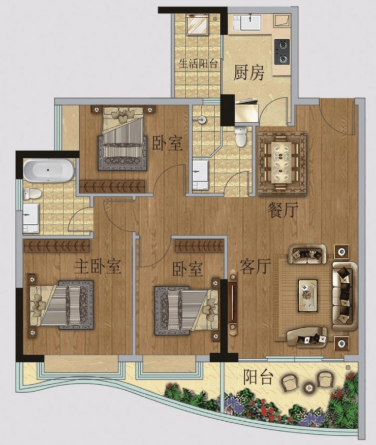 06户型【107房 3 房 2卫】环幕江景