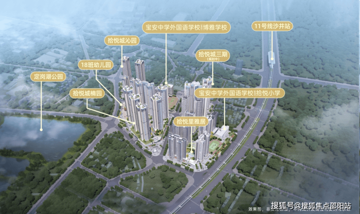 拾悦城沁园位于宝安区沙井街道壆岗社区,寮丰路与岗头路交汇处,东侧紧挨着宝安大道,距离11号线沙井站步行约800米。
