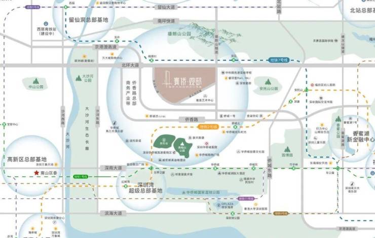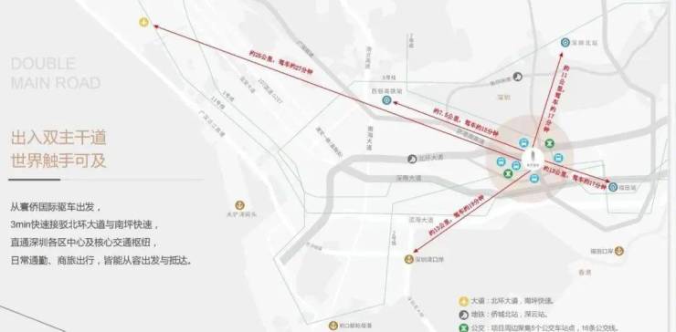 快捷交通路网,北环大道/南坪快速/侨香路/京港澳高速,20-30分钟到福田CBD、深圳北站、皇岗/福田/深圳湾三大口岸、宝安机场等,城芯而居,超享生活。