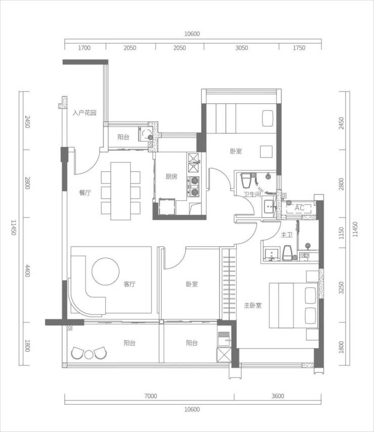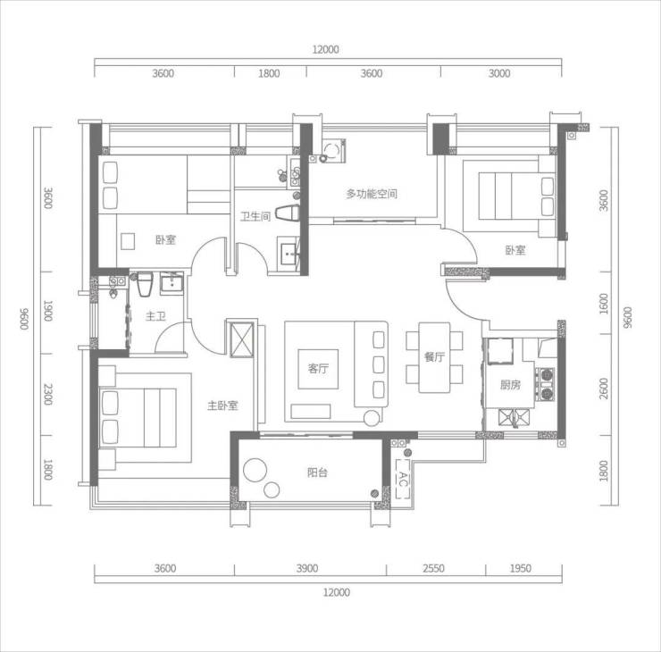 建面约120㎡C户型(3+1房2厅2卫),此户型拓展空间大,给生活更多满足: