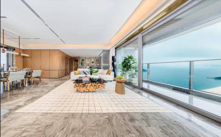 客厅与次卧阳台连通,宽度达约7米,让风景映入眼帘;