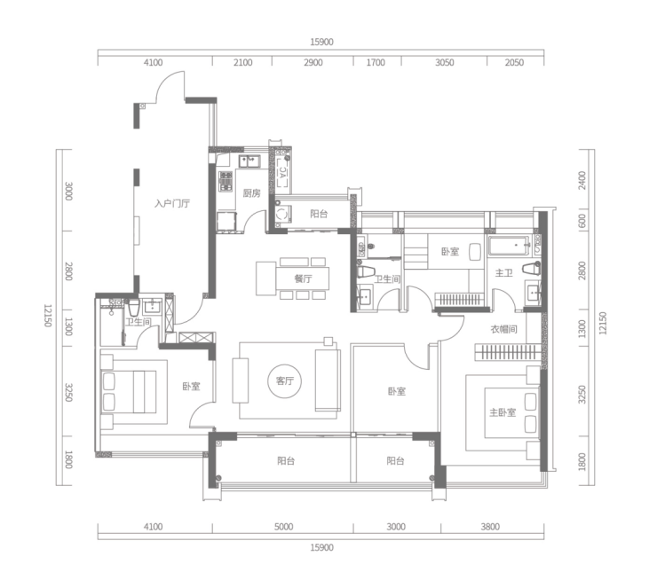 奢阔横厅设计,南北通透格局,主卧与客卧分区,私密性更强;