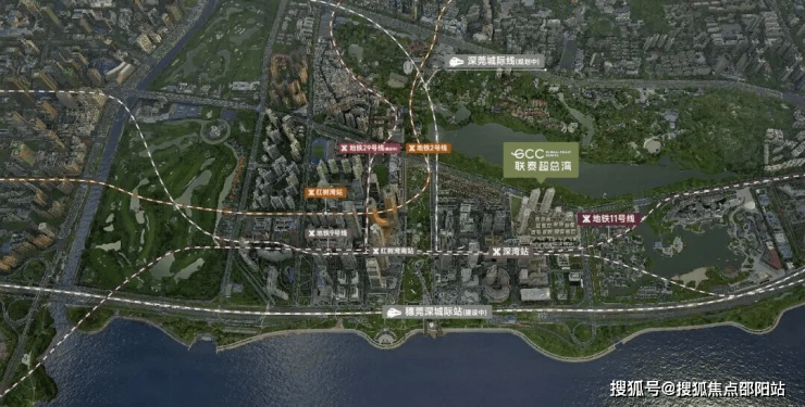 具体来看,项目地理位置得天独厚:西邻京东总部等深超总核心地标,东接蓝楹湾别墅群、欢乐海岸顶级商圈,左手是68.5万㎡华侨城湿地公园的生态绿肺,右手直面深圳湾无遮挡海景,形成“西望城市天际线、东揽高端商圈、北拥生态湿地、南瞰一线海景”的四维景观格局、