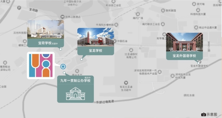 尖莎咀购物中心(沃尔玛)、逾10万㎡龙岗首个京基KK系商业(在建中)环伺左右,充分满足日常所需。项目自带12班制幼儿园,与宝龙学校仅一路之隔,宝龙外国语学校、宝荷学校(在建中)、九年一贯制公办学校(规划中)等在侧,全学龄优质资源,让书香浸润成长每刻。