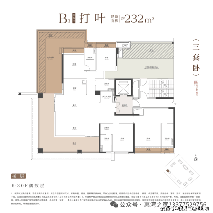中盛・遂晴府首推第6栋,揽涛景高尔夫的广袤绿意与东江的壮阔江景双景观景。一共58套建面166/232平方米的大平层房源,户户配备40~75平方米L型空中庭院、3.15米优越层高,以最低125%的实得率受到购房客户持续关注。