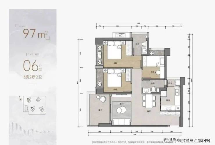 3房为97平3房2卫的户型